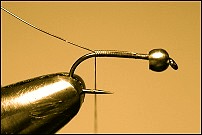 Using hare's ear or hare's mask dubbing, dub a tapered body directly up to the bead. Use a little extra dubbing next to the bead to ensure it won't move about by 'wedging' it in place.